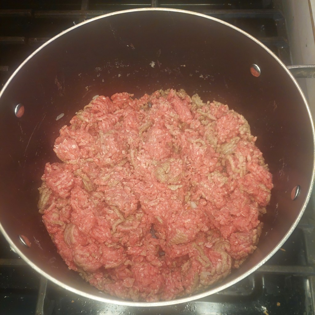 Once that’s done we want to start to brown our meat. I set my stove to medium and then made sure to break up all the pieces as small as you can.