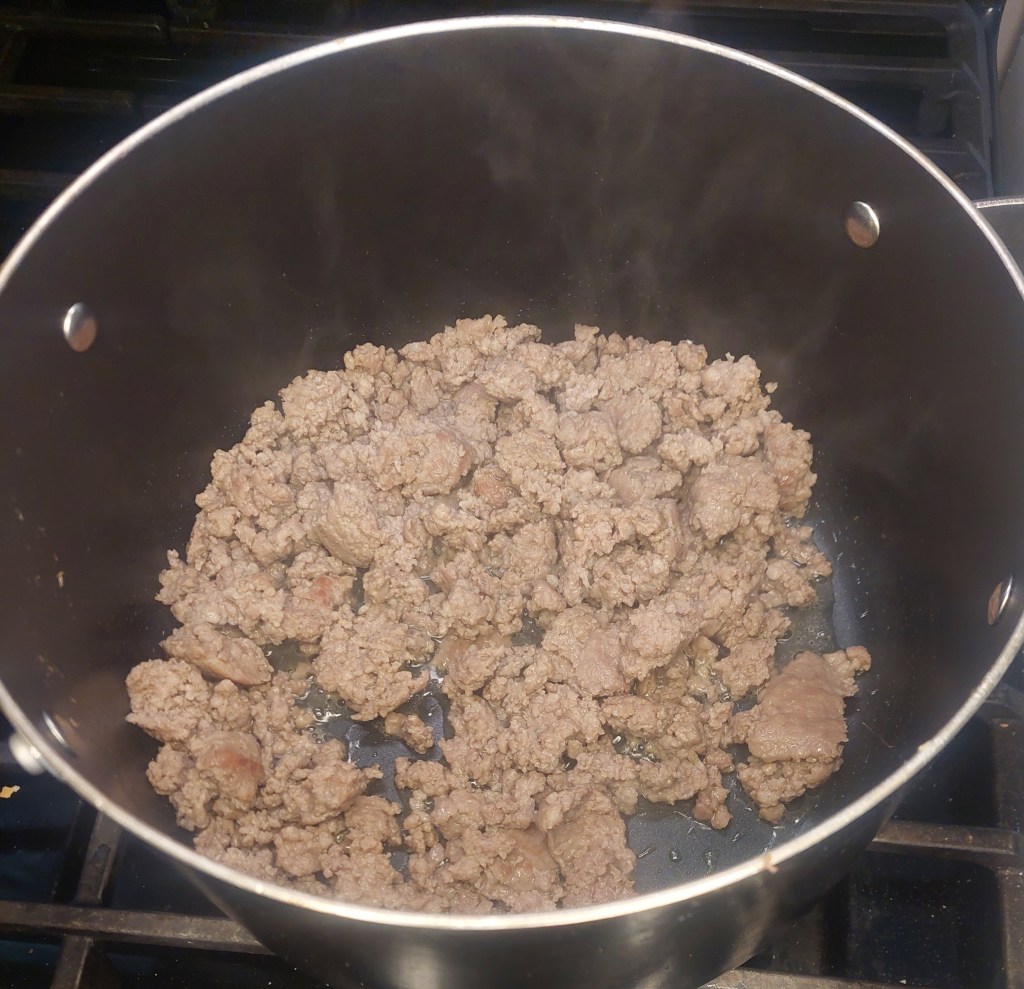 Brown your pork. Some recipes may call for you to drain your fat, if you want to feel free, but I didn’t have that much fat, and I like the flavor it adds.