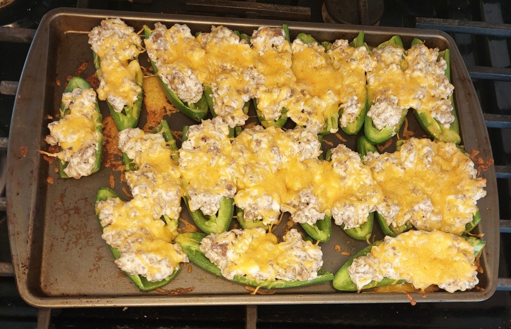 I’ve seen and eaten versions of this recipe with and without the cheese. To be honest they both tasted great, but I think if you’re already going to be eating pork and cream cheese you might as well throw some regular cheese on there as well. The cheese also provides a nice layer on top of the peppers that lets you push the meat down into the pepper so that it really sits in there.