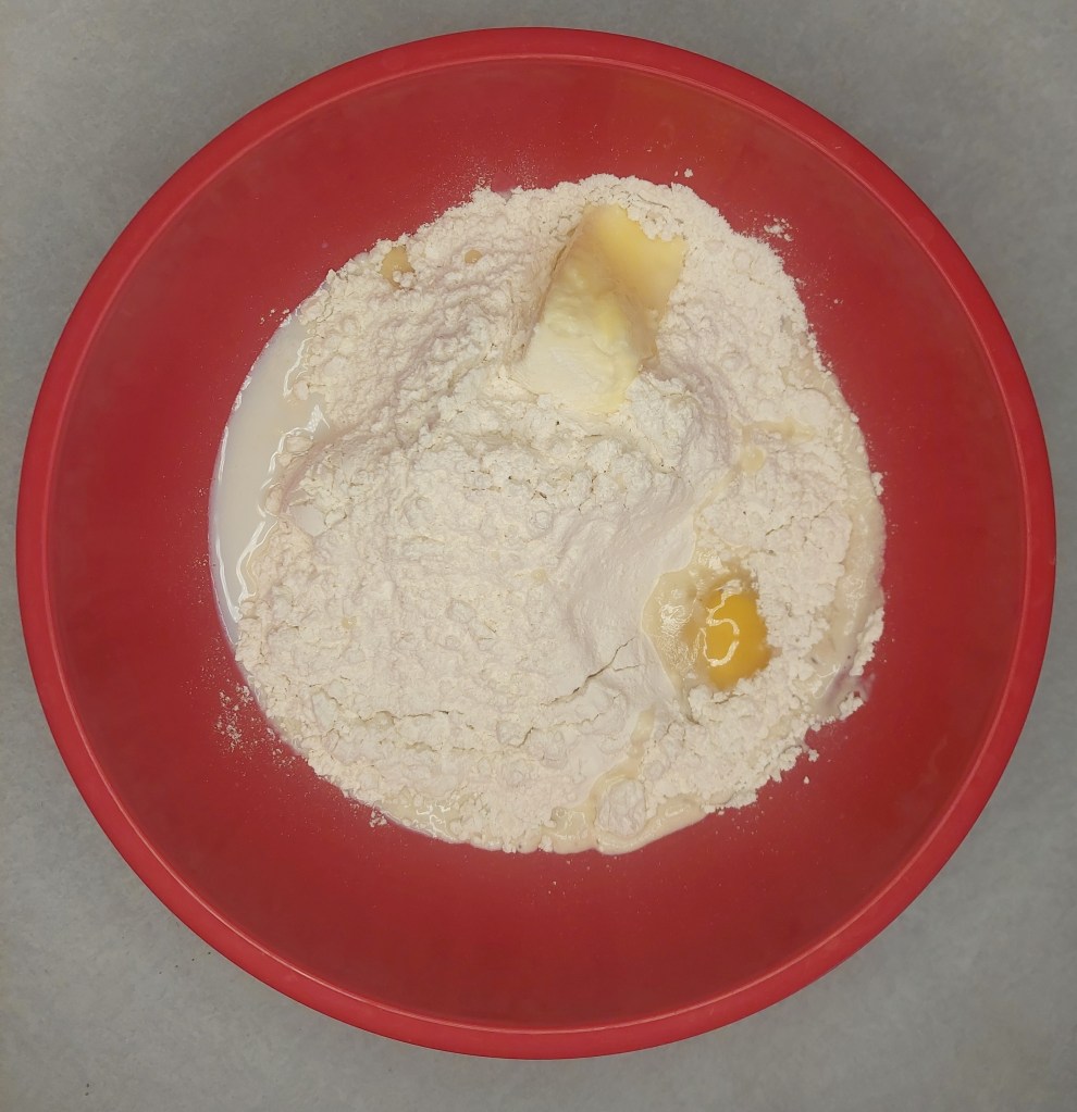 Warm up your milk (usually a minute in the microwave works) and add your quarter cup of sugar and yeast. This recipe doesn’t require a full blooming of the yeast, so if you make sure it’s alive (it creates bubbles) that should be good enough.