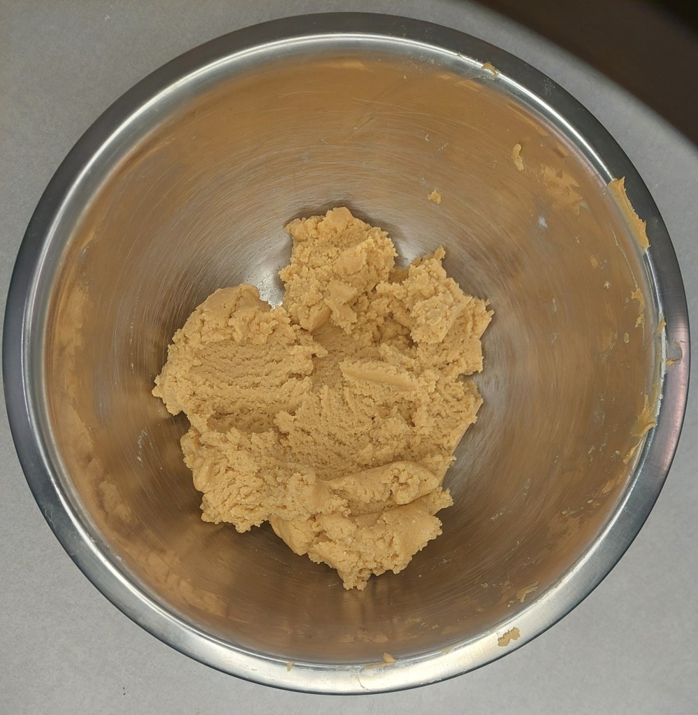 Essentially we are trying to “cream” the peanut butter, which is normally a process of incorporating air into a sugar and fat mixture, but peanut “butter” actually refers to the spreadability and not the dairy or fat content, so it won’t work perfectly. Essentially just make it uniform.