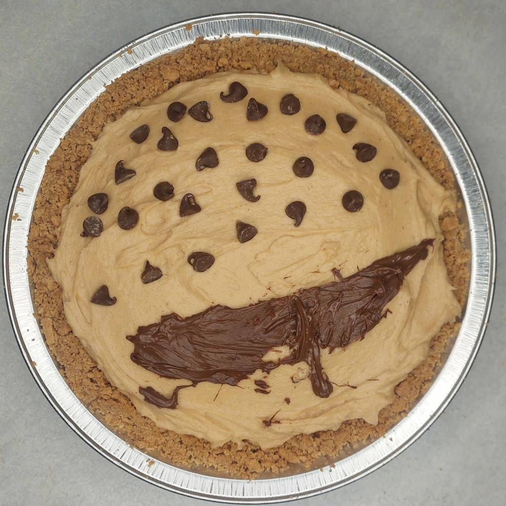 You can either eat the pie as is or you can add any toppings you want. Completely up to you, I melted some chocolate chips in the microwave poured it over the top of the pie, thought it looked ugly and then just stuck a bunch of chocolate chips directly into it. Beauty is in the eye of the beholder, so feel free to do whatever you want.