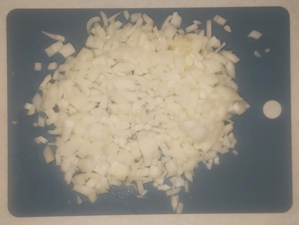 I started by chopping some onions, I know it’s not in the ingredient list above but I had some so I chopped them up and threw them in.