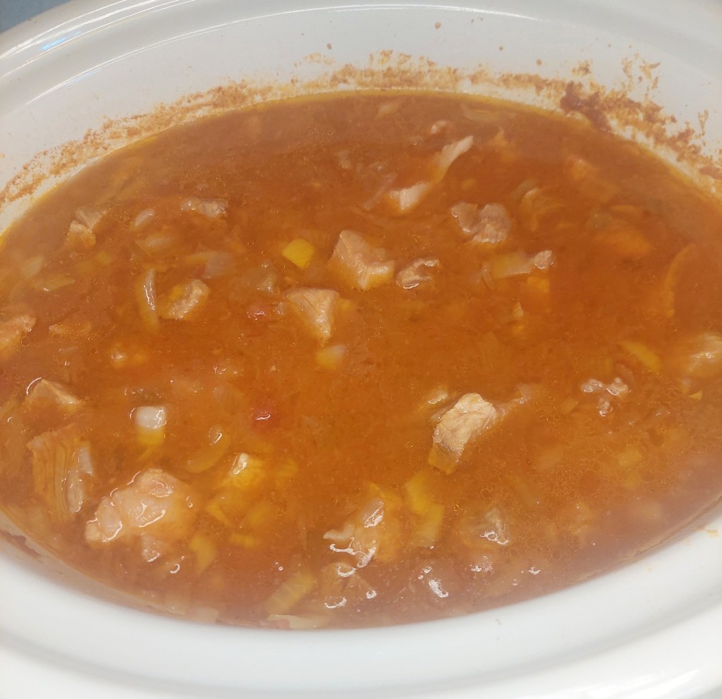 Now throw it all into a slow cooker and make sure that the pork is covered in salsa.
